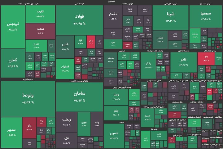 نمادهای فولاد و شپنا بیشترین تاثیر مثبت بر روی شاخص کل و میدکو بیشترین تاثیر منفی را بر روی شاخص کل گذاشتند.